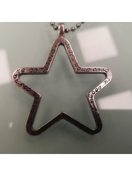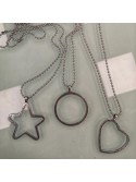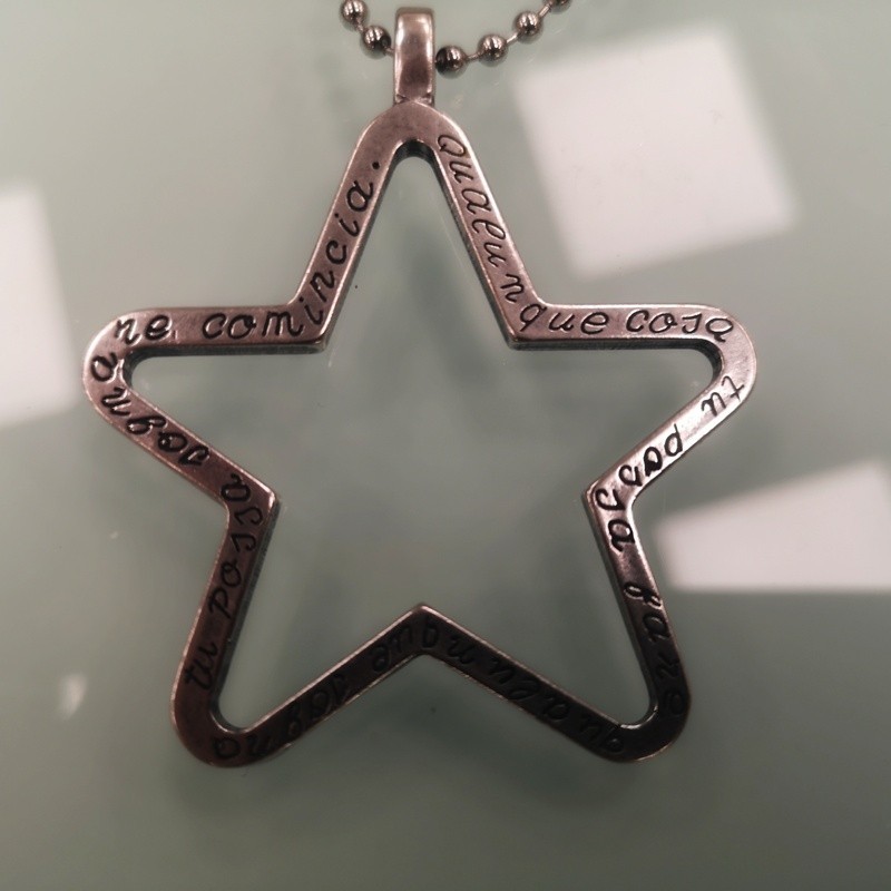 Collana lunga con ciondolo a cuore, stella o rotondo e scritta incisa (per es 'Dove meno te lo aspetti può celarsi una poesia)