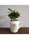 La pianta di Coffea arabica (Pianta del caffè) è un arbusto originario dell’Etiopia ed appartenente alla famiglia delle Rubiaceae. Sviluppa foglie grandi, lunghe 6-12 centimetri, opposte, ovali o oblunghe, verde scuro, produce fiori di colore bianco e frutti tondeggianti che a maturità hanno un colore rosso o violaceo. Coltivata in vaso come pianta decorativa d’appartamento, non supera i 200 cm di altezza. Non richiede particolare manutenzione, necessita di una buona esposizione ai raggi solari. Temperatura minima: 13 °C.